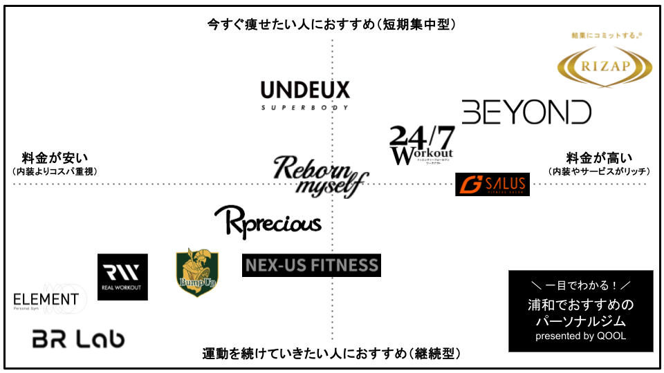 今回QOOL編集部で浦和区にある多数のパーソナルトレーニングジムを「口コミ・コスパ・店舗規模・浦和駅からの近さ」を軸に徹底比較。おすすめ店舗だけを厳選しました。